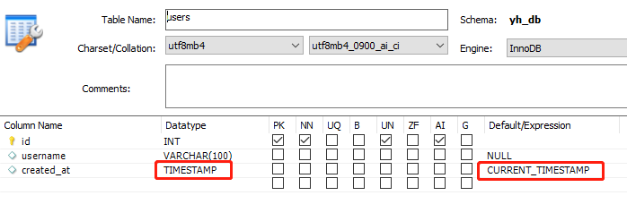 - Apply 및 Finish로 적용시에, default/ expression에는 자동으로 대문자로 CURRENT_TIMESTAMP 표시된다.