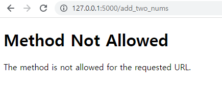 - 따라서, 필자가 위에서 작성한 코드 /add_two_nums의 경로도 똑같이 GET으로 요청했다.