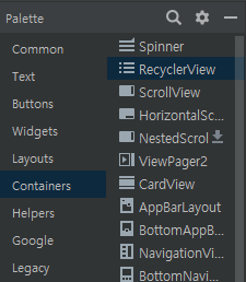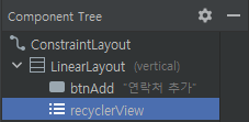 1. activity_mai.xml에서 팔레트- Containers-RecyclerView를 드래그 해서 UI 편집기에 가져다 놓는다.