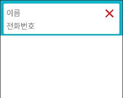 | <?xml version="1.0" encoding="utf-8"?> xmlns:app="http://schemas.android.com/apk/res-auto" xmlns:tools="http://schemas.android.com/tools" android:layout_width="match_parent" android:layout_height="wrap_content" android:background="#00BCD4" android:orientation="horizontal"> <androidx.cardview.widget.CardView android:id="@+id/cardView" android:layout_width="match_parent" android:layout_height="match_parent" android:layout_marginLeft="10dp" android:layout_marginTop="10dp" android:layout_marginRight="10dp" android:layout_marginBottom="5dp" app:cardCornerRadius="5dp" app:cardElevation="5dp"> <LinearLayout android:layout_width="match_parent" android:layout_height="match_parent" android:orientation="horizontal"> <LinearLayout android:layout_width="0dp" android:layout_height="wrap_content" android:layout_weight="4" android:orientation="vertical"> <TextView android:id="@+id/txtName" android:layout_width="match_parent" android:layout_height="wrap_content" android:layout_marginLeft="10dp" android:layout_marginTop="15dp" android:text="이름" android:textSize="26sp" /> <TextView android:id="@+id/txtPhone" android:layout_width="match_parent" android:layout_height="wrap_content" android:layout_margin="10dp" android:text="전화번호" android:textSize="26sp" /> </LinearLayout> <ImageView android:id="@+id/imgDelete" android:layout_width="wrap_content" android:layout_height="wrap_content" android:layout_marginTop="10dp" android:layout_marginRight="10dp" android:src="@drawable/ic_baseline_close_24" /> </LinearLayout> </androidx.cardview.widget.CardView> </LinearLayout> |