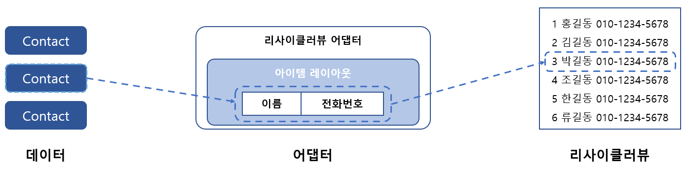 -> ViewHolder 클래스에 있는 txtName과 txtPhone.