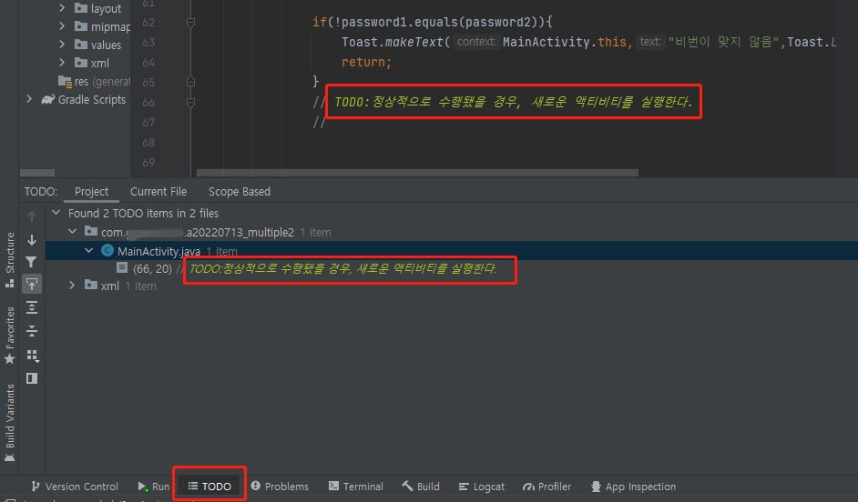 주석 표시를 하고 그 뒤에 TODO라고 적으면 자동으로 반영이 된다.
