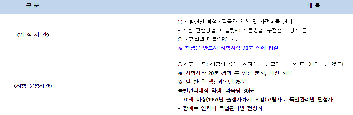 시험 시간 및 신청 시간