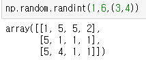- random.randint(범위 시작 숫자, 범위 끝의 숫자, size = shape)