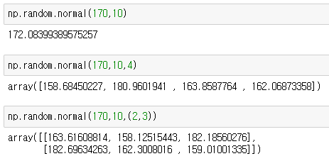 - 넘파이에서는 랜덤으로 수를 채우는, 데이터을 제공한다.