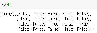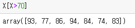 ex) X의 데이터 중에서 70보다 큰 데이터만 가져오시오.