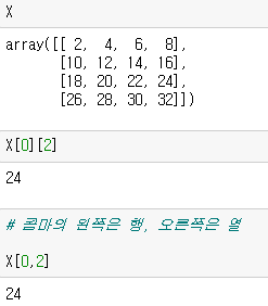 - 콤마 왼쪽은 행, 오른쪽은 열