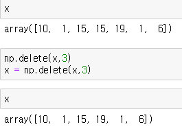 np.delete(넘파이 변수, 인덱스)