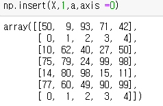 np.insert(넘파이 변수, 인덱스, 데이터,(축 정보))
