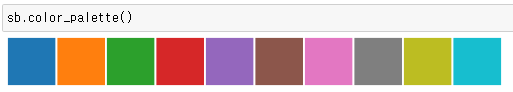 ㄴ seaborn이 기본적으로 가지고 있는 10개 색의 팔레트이며, 이후 바의 컬러를 정할 때 사용할 수 있음
