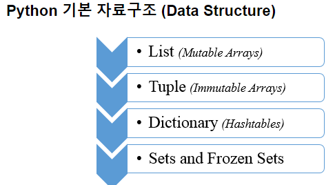 파이썬에서 데이터 스트럭쳐라고 하면, 여러개의 데이터를 하나의 변수에 담는 것.